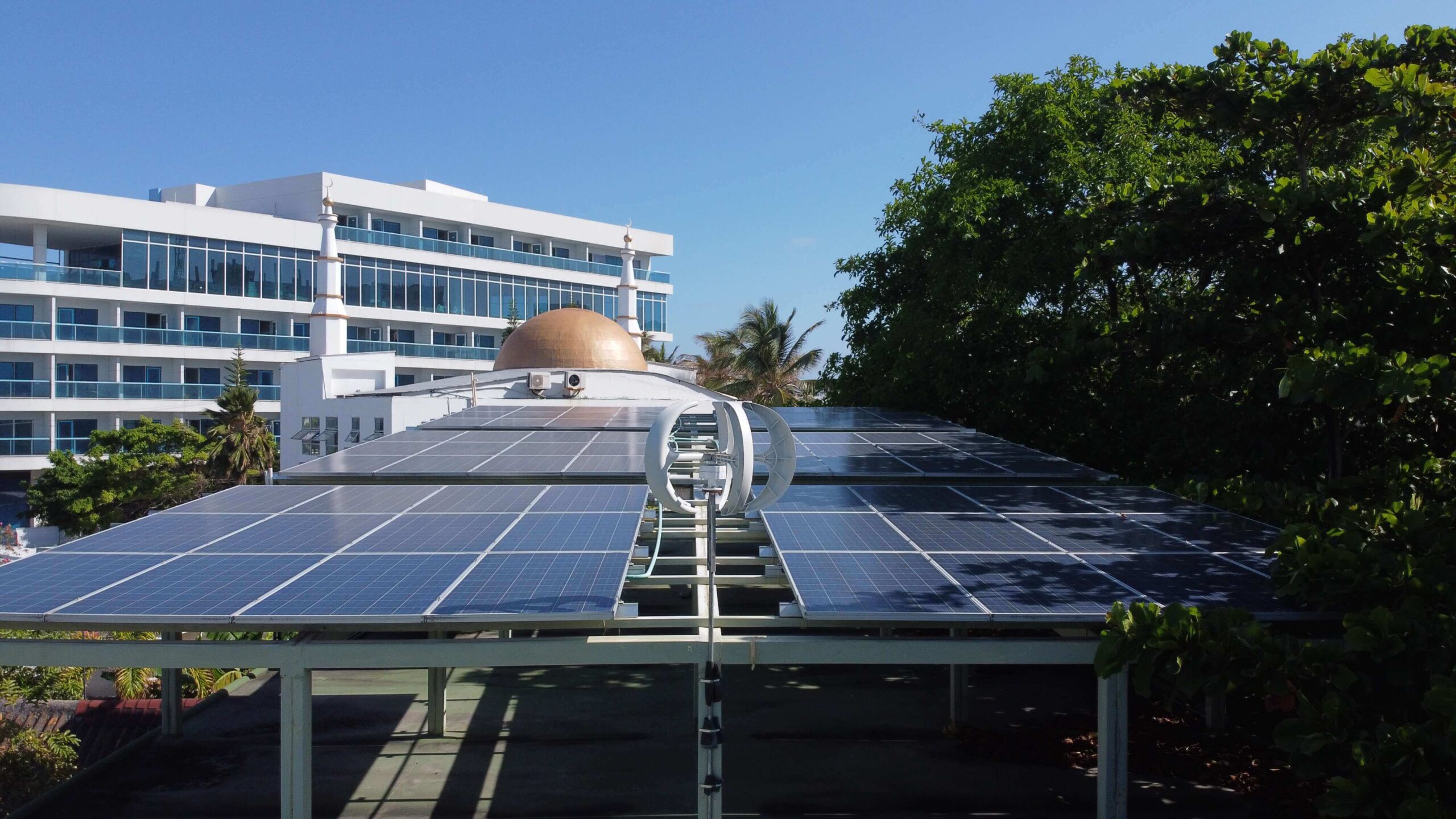 Como complemento al proyecto nueva Sede EEDAS S.A. E.S.P., se estructuró el proyecto para la aplicación de un sistema hibrido (fotovoltaico – eólico) para auto generación de energía en las nuevas aulas educativas y el edificio administrativo de la sede Caribe de la Universidad Nacional (Sede San Luis), de tal manera que permite lograr el desarrollo de alternativas de eficiencia energética que contribuyen con la disminución de subsidios por menores tarifas; éste proyecto de propiedad de EEDAS S.A. E.S.P., está orientado a edificaciones activas y con la finalidad que el modelo remunere sus costos operativos y de inversión vía kWh producido.