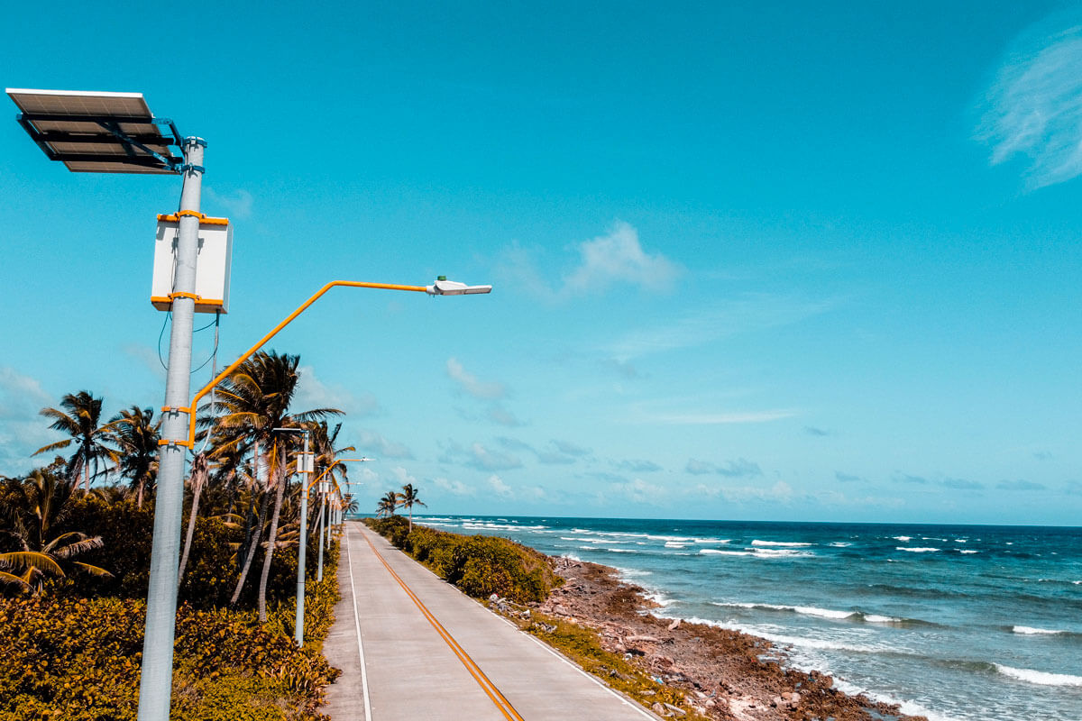 El proyecto consiste en la instalación de 180 luminarias LED con sistemas de alimentación fotovoltaica las cuales incluyen su propio sistema de almacenamiento (baterías). Las luminarias están distribuidas en el sector de South End, el cual no cuenta con suministro de alumbrado público ni infraestructura disponible para una potencial expansión de iluminación convencional.